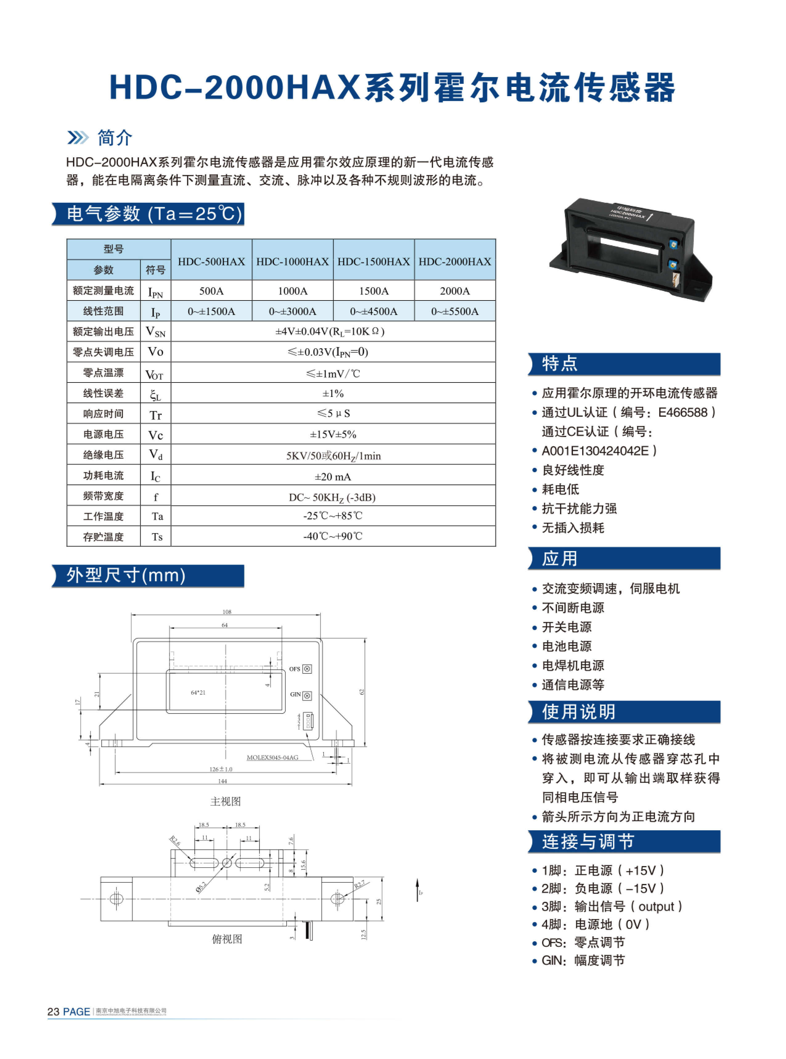 HDC-2000HAX series Hall current sensor is a new generation of current sensor using the principle of Hall effect. It can measure currents of DC, AC, pulse and various irregular waveform under electrical isolation.